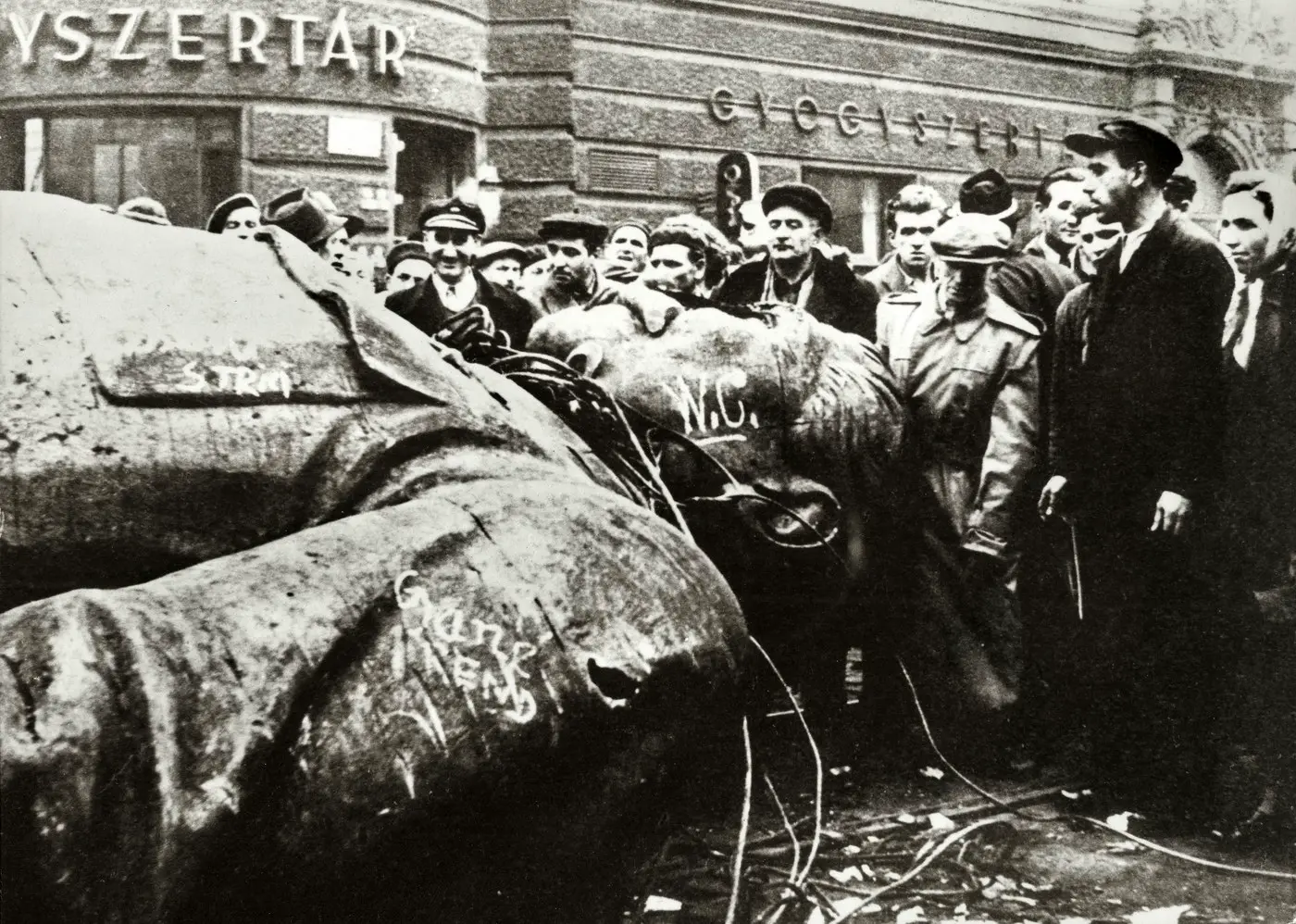 Demonstranti u Budimpešti obaraju spomenik Staljinu, 1956. / Fototeca Gilardi / akg-images / Profimedia