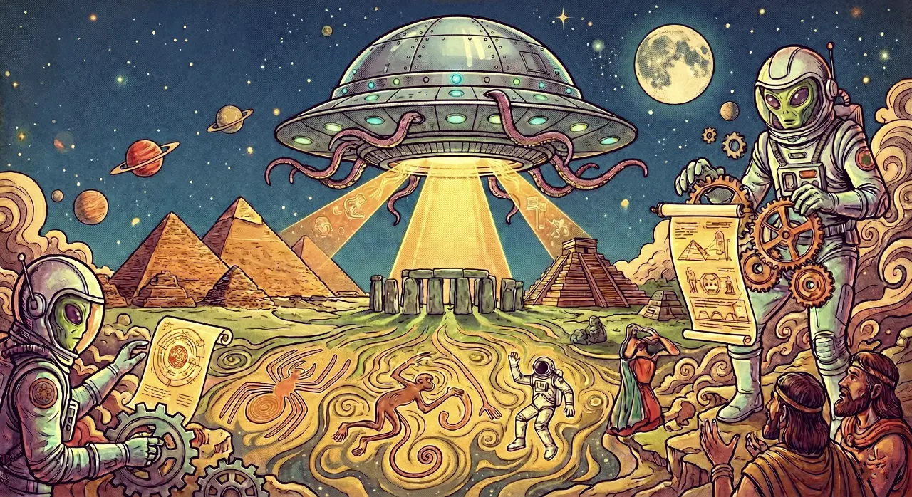 Narator i snimak iz ptičje perspektive prestaju, i mjesto na ekranu se ustupa galeriji neobičnih likova koji žele da nam daju odgovore na naša pitanja. Jedan od njih je pogotovo interesantan – ima veliku neurednu kosu i govori: „Ne kažem da su to bili vanzemaljci, ali bili su vanzemaljci!“